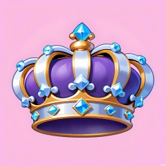TBDJ, A vibrant, digital illustration of a sparkling, diamond-encrusted crown with a large, blue sapphire in the front. The crown has golden prongs holding the gems. The background is a simple, light pink.