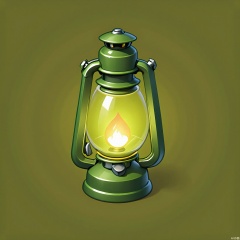 TBDJ, A whimsical, digital illustration of a glowing, green lantern with a flickering flame inside. The lantern has a metal frame and a glass cover. The background is a simple, olive green.