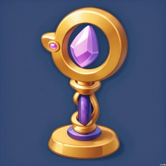 TBDJ, A lively, digital illustration of a glowing, magical staff with a swirling, purple crystal at the top. The staff has intricate gold carvings along its length and a small, ornate base. The background is a simple, deep navy blue.