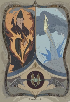 OKLP, A digital illustration of a "Tower" - inspired tarot scene, showing a tall tower being struck by lightning. People are falling from the tower. They are enclosed in a frame with storm - related and destructive patterns. The tower is made of stone with a pointed roof. The people are in mid - air, their clothes fluttering. The background is a complex tarot - style pattern of dark clouds, thunderbolts, and rubble. The artwork has a detailed, semi - realistic style with bold, contrasting colors and dramatic shading, symbolizing sudden change and upheaval.