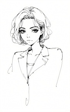 GBSX, Digital black - and - white pen sketch of a middle - aged woman with a short, bob haircut and a serious expression. She's wearing a business suit and holding a briefcase. The precise, sharp lines emphasize her professionalism and the intensity in her eyes as she looks directly at the viewer on the plain white page.