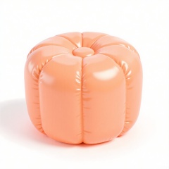 PZF, A high - quality photograph of a peach - colored inflatable side table with a cute design. The side table has an inflated, round top and short, stubby legs. The top has a plush, soft - looking surface, as if it's filled with air and fluff. The material is a smooth, glossy nylon that reflects light. The side table is positioned against a plain white background, making its peach color prominent. The style is modern and adorable, with a slight vintage touch in its simple, rounded form.