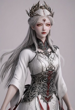 score_9,high detail,best quality,shiny skin,shiny,asxieshen,1girl,solo,yellow eyes,long hair,white hair,white background,realistic,closed mouth,jewelry,dress,hair ornament,earrings,simple background,facial mark,forehead mark,white dress,makeup,wide sleeves,red lips,looking at viewer,thighs,<lora:QQSponyasxieshenV1:0.8>,<lora:Pony_DetailV2.0:0.8>,<lora:皮肤凹痕:0.1>,