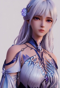 score_9,high detail,best quality,shiny skin,shiny,shengcaiersjcf,1girl,solo,purple eyes,white hair,long hair,white background,hair ornament,jewelry,earrings,realistic,simple background,closed mouth,dress,bare shoulders,hair flower,white dress,lips,breasts,looking at viewer,upper body,<lora:QQSponyshengcaiersjcfV1:0.8>,<lora:Pony_DetailV2.0:0.8>,<lora:皮肤凹痕:0.1>,