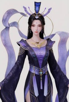 score_9,high detail,best quality,shiny skin,shiny,zixia,1girl,solo,red eyes,black hair,long hair,white background,dress,jewelry,simple background,hair ornament,necklace,closed mouth,earrings,forehead mark,long sleeves,expressionless,sash,hagoromo,purple dress,chinese clothes,shawl,looking at viewer,thighs,<lora:QQSponyzixiaV1:0.8>,<lora:Pony_DetailV2.0:0.8>,<lora:皮肤凹痕:0.1>,