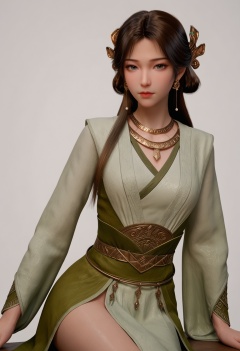 score_9,high detail,best quality,shiny skin,shiny,meining,1girl,solo,grey eyes,brown hair,long hair,jewelry,white background,necklace,realistic,hair ornament,earrings,simple background,dress,closed mouth,long sleeves,chinese clothes,lips,sash,green dress,looking at viewer,thighs,<lora:QQSponymeiningV1:0.8>,<lora:Pony_DetailV2.0:0.8>,<lora:皮肤凹痕:0.1>,