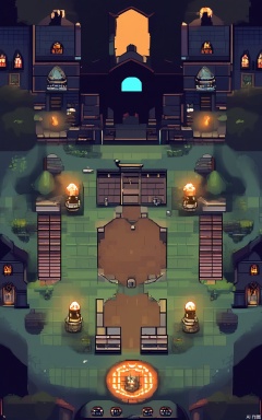 XSCJ, Aerial view of a haunted - mansion pixel - art estate at night, with a dark and eerie color scheme. The scene is filled with pixel - built mansions, graveyards, and ghostly apparitions. The estate is illuminated by flickering candles and moonlight, creating a spooky and mysterious atmosphere. The buildings have crumbling walls and crooked roofs, some with cobwebs and broken windows. The streets are lined with tombstones and haunted trees, with small occult shops and séance rooms glowing with a soft light. The overall aesthetic is creepy and atmospheric, with a focus on symmetry and balance.