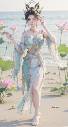 (masterpiece:1.2),best quality,(UE5.5,rendered with Unreal Engine 5,Unreal Engine 5,CG rendering:1.1),original,extremely detailed wallpaper,perfect lighting,1girl,solo,standing,(huge breasts:2.69),(full breasts:2.59),,looking at viewer,(cowboy_shot:1.1),long hair,high heels,blurry background,depth of field,motion blur,long dress,china_dress,chinese_style,bare shouders,crystal_earrings,headpiece,hair_tie,chest_jewel,gem,necklace,jewelry,in summer,day,outdoors,nature,sea,(rose,beach:1.49),(huge breasts:2.99),(full breasts:2.99),,(Background with lotus pond and pink lotus flowers:1.39),Xmupeiling,XsongyuYK,XqiyueFHK,XheguangzhefandiYK,XxiaobaiNZYK,XlimuwanJCBYK,XmeijiK,XzhouruK,Xjinniang,Xliangpianqun,Xyinggou,Xfeitianwunv,XnangongxierK,Xbaiyuekuishouban,Xnvwashenian,XmupeilingY,Xdaji,Xyujishenian,XluxueqiX