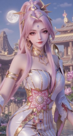 (masterpiece:1.2),best quality, (UE5.5,rendered with Unreal Engine 5,Unreal Engine 5,CG rendering),1girl, navel, solo, midriff, bare shoulders, hair ornament,(long hair),(High double ponytail:1.49), red lips, BREAK, (looking at viewer:1.39), chinese clothes,(long dress:1.36), (lace:1.28), BREAK,blurry, solo focus, long hair, lips, daytime, lipstick, outdoors, standing,upper body,(huge breasts:2.99), (full breasts:2.99),background, solo, makeup,Xyunxiao,(Lotus,Water Lily,Blue sky,full moon:1.39),(Lotus pond,ancient Chinese architecture:1.39),Xmupeiling,XsongyuYK,XqiyueFHK,XheguangzhefandiYK,XxiaobaiNZYK,XlimuwanJCBYK,XmeijiK,XzhouruK,XHhanfududou,XzhouruK2,XmeijiK2,XlinziyueK2,Xjinniang2,Xdunhuangfeitian,Xyinggou2,XnangongxierK2,Xnvwashenian2,XmupeilingYK,Xdaji2,Xyujishenian2,lanxinai-luxueqiX,Xlinagpiandiaodai
