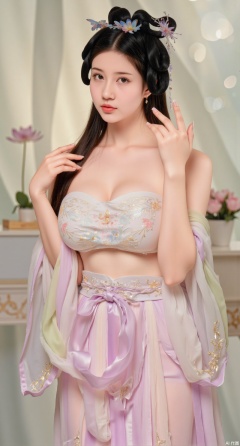 (masterpiece, best quality:1.2), highres, extremely detailed, 1girl,looking at viewer,indoors, (big breasts:2.69),Depth of field,garden of the sun,shiny,flowers, garden, 1girl, (Lotus:1.39), (butterflies, ultra detailed, glary,Light, light particles,glitter,reflect:1.29),Xqianqianmeinu,Xmoxionghanfu,Xleisiqipao,Xxeushengxiaofu,XlinziyueY2,Xsongmoxionghanfu