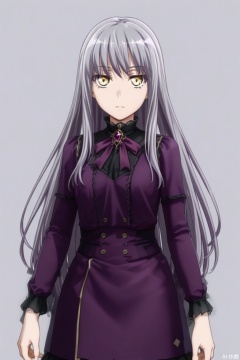 looking at viewer,purple hair,Yukina,long hair,grey hair,yellow eyes