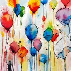 PMSC, A lively, Chinese ink-wash watercolor of a group of children flying kites on a sunny day, in a colorful palette of red, yellow, blue, and green. The children's clothes and kites are depicted with vibrant, energetic brushwork, reflecting their joy and excitement. The white background provides a bright and open space for the scene to unfold, creating a cheerful and uplifting atmosphere.