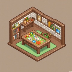 XXDJ, A detailed, stylized digital drawing of a cozy children's game room corner, featuring a low table with a colorful playmat, a set of wooden blocks and toys, and a beanbag chair shaped like a friendly animal. The background includes a wall decorated with cartoon characters and a bookshelf filled with children's books. The overall aesthetic is playful and inviting.