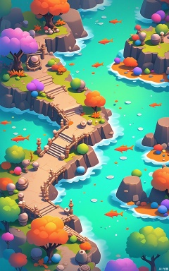 SBYX, An aerial view of a whimsical, cartoon-style, underwater village. Coral reefs in vibrant hues of pink, purple, and orange serve as the foundation for the houses, which are made of seashells and pearls. Schools of colorful fish swim around, and a gentle current carries seaweed that sways like ribbons. The water is a crystal-clear turquoise, and sunlight dances on the seabed.