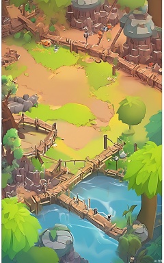 SBYX, An aerial view of a whimsical, cartoon-style, jungle city. Skyscrapers made of bamboo and vines reach towards the sky, and bridges made of ropes and wooden planks connect the buildings. Monkeys swing from tree to tree, and exotic birds soar through the air. The foliage is a lush green, and the air is thick with the sounds of nature.