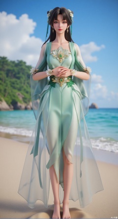 (masterpiece:1.2),best quality,(UE5.5,rendered with Unreal Engine 5,Unreal Engine 5,CG rendering:1.1),original,extremely detailed wallpaper,perfect lighting,1girl,solo,standing,(huge breasts:2.69),(full breasts:2.59),,looking at viewer,(cowboy_shot:1.1),long hair,high heels,blurry background,depth of field,motion blur,long dress,china_dress,chinese_style,bare shouders,crystal_earrings,headpiece,hair_tie,chest_jewel,gem,necklace,jewelry,in summer,day,outdoors,nature,sea,(Liquid glass style flowers,beach:1.49),(huge breasts:2.99),(full breasts:2.99),,(Background with lotus pond and pink lotus flowers:1.39),,Xdongjixiaofu,Xlanbaixiaofu,XkjwjlzyY,XLiquidGlass,XiPhone17Pro,Xshuilian,XzhuxianbiyaoX
