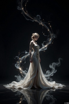 In the dark world, a light - haired woman stands. Light trails wind like memory threads. She lowers her eyes, her figure gently wrapped by light and shadow, with the reflection elongating loneliness. In the interweaving of light and shadow, her silent emotions towards the world are hidden, quiet and profound...jzbj,Mirror-reflective Background,Ink Wash Painting