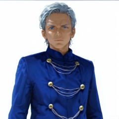 looking at viewer,Sarome Seijin,uniform, military uniform, pants, jacket,chain-link, blue jacket, blue coat,white gloves, military