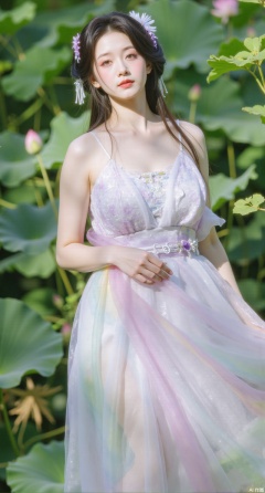 (masterpiece, best quality:1.2),1girl, navel, solo, midriff, bare shoulders, hair ornament,(long hair),(High double ponytail:1.49), red lips, BREAK, (looking at viewer:1.39), chinese clothes,(Holographic pink|green dress:1.36), (lace,Rainbow Gradient Color:1.28), BREAK,blurry, solo focus, long hair, lips, daytime, lipstick, outdoors, standing,upper body,(huge breasts:2.89), background, solo, makeup,(Liquid glass style flowers:1.49),(huge breasts:2.99),(full breasts:2.99),,(Background with lotus pond and pink lotus flowers:1.39),Xdongjixiaofu,Xlanbaixiaofu,XkjwjlzyY,XLiquidGlass,XiPhone17Pro,Xshuilian,XzhuxianbiyaoX,Xfenlanliantiyongyi,Xvangoghs,Xzisehanfu,XluxueqiXY