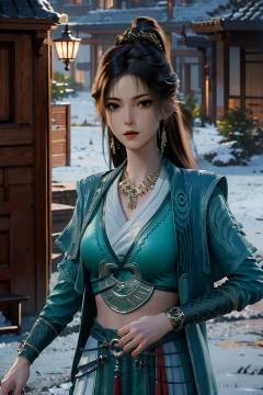 She was wearing black short sleeves and standing in the snow<lora:20250615-1749959692088:1>