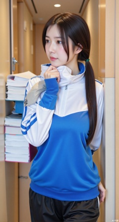 (masterpiece, best quality:1.2), A girl with two braids wears a blue and white sports school uniform, the blue part glistening slightly in the sunlight. Hugging a stack of exercise books, she runs along the corridor of the teaching building. The cold wind lifts a corner of her scarf, and her cheeks are flushed from the cold, but her eyes are full of energy. Dynamic pose, sharp lighting, youthful vibe..(huge breasts:2.99), (full breasts:2.99),Xqianqianmeinu,Xmoxionghanfu,Xleisiqipao,Xxeushengxiaofu,Xxiajixiaofu,Xzileisiqipao,XluxueqiXY2,Xyaoyuexianzi,XteYK,Xdongjixiaofu2,Xclaudmonetstyle,XLiquidGlassMaterial,Xclaudmonet