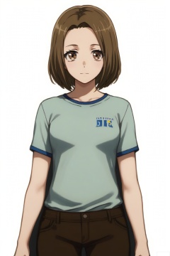 looking at viewer,1girl, solo, brown hair, shirt, brown eyes, short hair,Matsugi Ririko