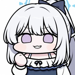 chibi,1girl,solo,upper body,,miyako \(swimsuit\) \(blue archive\),blue archive,long hair,ponytail,white hair,bangs,bow,halo,hair bow,purple eyes,,very long hair,grey hair,evil grin, ,white background,simple background,<lora:JazzJack_noob1:1>,