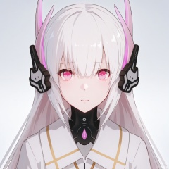 1girl,solo, liv-eclipse/(punishing gray raven),long hair, hair ornament, headgear, white hair, pink eyes,