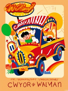 SLXT, A lively, vector-lined commercial illustration of a retro-themed carnival. A young boy in a vintage-style shirt and jeans is riding a classic car on a carousel. The background shows a nostalgic carnival with a pinball machine game, a root beer float stand, and a sign that says "Retro Revival." The sky is a warm orange with a sunset glow. The style is playful and cartoonish, with bold outlines and a mix of retro colors, capturing the charm and excitement of a retro carnival.