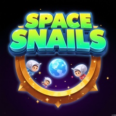YXLG, Digital artwork highlighting the game logo "SPACE SNAILS" in a quirky, cartoonish font. The text is in a bright neon green with a 3D effect that makes it seem to zoom through space. The background is a black and purple star - filled gradient with a circular gold border. Inside the circle are snails with space helmets and rocket - powered shells, and in the center is a tiny planet. It has a fun and fantastical feel.
