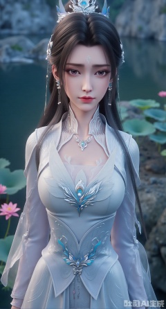 (masterpiece, best quality:1.2),1girl, navel, solo, midriff, bare shoulders, hair ornament,(long hair),(High double ponytail:1.49), red lips, BREAK, (looking at viewer:1.39), chinese clothes,(Holographic pink|green dress:1.36), (lace,Rainbow Gradient Color:1.28), BREAK,blurry, solo focus, long hair, lips, daytime, lipstick, outdoors, standing,upper body,(huge breasts:2.89), background, solo, makeup,(Liquid glass style flowers:1.49),(huge breasts:2.99),(full breasts:2.99),,(Background with lotus pond and pink lotus flowers:1.39),,Xdongjixiaofu,Xlanbaixiaofu,XkjwjlzyY,XLiquidGlass,XiPhone17Pro,Xshuilian,XzhuxianbiyaoX,XnaiqiXY,Xzihanfu