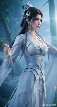 (masterpiece, best quality:1.2),,(UE5.5,rendered with Unreal Engine 5,Unreal Engine 5,CG rendering:1.1),A female general with her hair up in a bun wears light cyan fish-scale soft armor, draped in a white crane cloak. (huge breasts:2.69),She gracefully wields a long sword with a jade hilt. Dancing amidst a bamboo grove, she sends leaves swirling around her. Behind her, a misty landscape painting shimmers, with soft moonlight silvering her blade. Flowing texture of the soft fabric, dappled bamboo shadows, elegant swordsmanship dynamics, ink-wash landscape background, poetic ancient atmosphere, 8K resolution.(huge breasts:2.99),(full breasts:2.99),Xdongjixiaofu,Xlanbaixiaofu,XkjwjlzyY,XLiquidGlass,XiPhone17Pro,Xshuilian,XzhuxianbiyaoX,XnaiqiXY,Xzihanfu