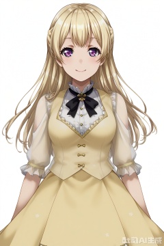 looking at viewer,Shirasagi Chisato,long hair, smile,bangs,blonde hair,purple eyes