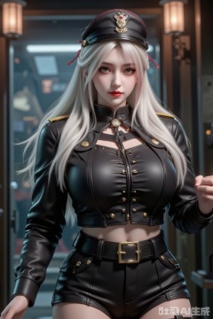 Masterpiece, the best quality, high quality, huge breasts,,(white hair:1.4),(long legs:1.3),(thin legs:1.4),1 girl dressed in the Kaiserlich Deutsche Marine (Kaisertum REICH) military uniform,