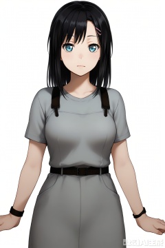 looking at viewer,Okusawa Misaki,long hair,bangs,blue eyes,black hair, hair ornament,hairclip,medium hair