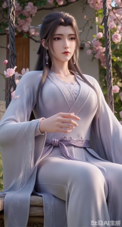 (masterpiece:1.2),best quality,(UE5.5,rendered with Unreal Engine 5,Unreal Engine 5,CG rendering:1.1),A flower courtesan wearing a jadeite hair crown dons a moon-white bellyband embroidered with grape vine patterns, paired with a light purple wide-sleeved ruqun. Sitting on a swing surrounded by blooming flowers, she plays the zheng. As she plucks the strings, falling pear blossoms dance with the musical notes. Behind her, a courtyard wall is covered with climbing roses, and sunlight rims her figure with gold. Transparent texture of jadeite, draping effect of silk, detailed strings of the zheng, falling petal trajectories, bright and soft color tones, 8K resolution, fine dynamic rendering, romantic spring atmosphere.,(huge breasts:2.99),(full breasts:2.99),Xgechuanguangchongstyle,Xyuanxionggirl,Xyunxiao,XyunxiaoYK,Xdixionglianyiqun,Xmiaozufushi,Xqilinxianzi,XTifaLockhart,Xjinshenjianshenfu,Xluxueqishuiyi,Xhongqipao