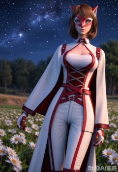 (in a meadow:1.3),(night:1.2),(stars:1.3),((perfect legs:1.2)),(large breasts:1.2),