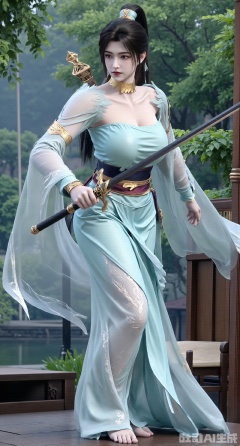 (masterpiece, best quality:1.2),,(UE5.5,rendered with Unreal Engine 5,Unreal Engine 5,CG rendering:1.1),A female general with her hair up in a bun wears light cyan fish-scale soft armor, draped in a white crane cloak,(huge breasts:2.89),She gracefully wields a long sword with a jade hilt. Dancing amidst a bamboo grove, she sends leaves swirling around her. Behind her, a misty landscape painting shimmers, with soft moonlight silvering her blade. Flowing texture of the soft fabric, dappled bamboo shadows, elegant swordsmanship dynamics, ink-wash landscape background, poetic ancient atmosphere, 8K resolution..(huge breasts:2.99),(full breasts:2.99),Xnanxiaochen,Xloubeimaoyi,Xrixisheyingfeng,Xnaiqishuiyi,Xzhaoxianger