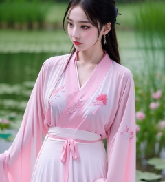 1girl,jewelry,red_lips_,lipstick,eye makeup,black hair,(diamond drop earrings:1.3),(solo:1.5),hanfu,<lora:汉服粉色交领汉服1.1:0.8>,plump breasts,(embroidery:1.2),(embroidery:1.2),upper body,pink,<lora:汉服眼妆1.3:0.5>,