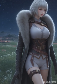 (in a meadow:1.3),(night:1.2),(stars:1.3),((perfect legs:1.2)),(large breasts:1.2),