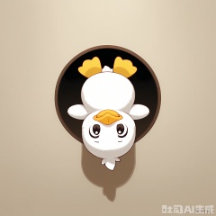 BYTX, A cute, fluffy yellow duck plush toy is hanging upside down from a wall, with its beak and legs pointing towards the ground. The duck has a small, round body, a short tail, and a soft, fuzzy texture. The background is a plain, beige wall with a small, dark doorway in the upper right corner. The lighting is soft and diffused, creating a gentle shadow on the wall. The image is a high-quality photograph with a warm, cozy atmosphere