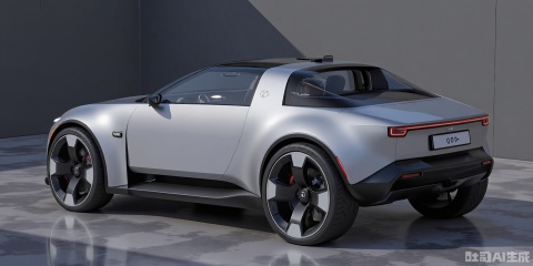 CYCX, A futuristic, small electric roadster with a minimalist design, characterized by an open-top, single-seater body in a glossy silver-blue. The roadster has a sleek, aerodynamic shape, a low-profile windshield, and black wire wheels. It features a small, removable hardtop and a minimalist interior with a digital instrument cluster. Parked on a reflective, silver-blue glass floor, with a plain dark gray wall behind it, the high-quality rendering showcases the roadster's speed and freedom.