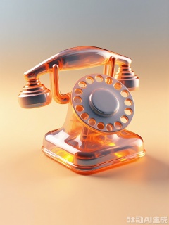 JBTM, A high-quality 3D image of a vintage, transparent glass telephone with a rotary dial, set against a gradient background changing from light gray at the top to soft beige at the bottom. The telephone is centered, facing slightly to the left, with a polished glass surface that reflects the light. Its design is classic and nostalgic, featuring a curved handset and a sturdy base. The lighting is warm and inviting, creating a cozy atmosphere around the telephone. The overall look is charming and retro, highlighting the telephone's vintage charm and practicality.