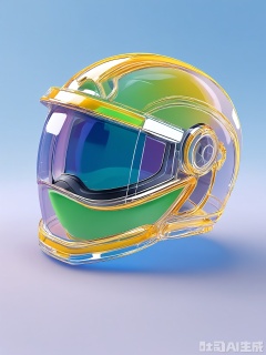 JBTM, A high-quality 3D render of a futuristic, transparent glass helmet with a visor, placed on a gradient background transitioning from deep purple at the top to bright neon green at the bottom. The helmet is centered, facing slightly upwards, with a sleek glass surface that reflects the surrounding colors. Its design is innovative and high-tech, featuring a streamlined shape and a built-in communication system. The lighting is dramatic and intense, highlighting the helmet's details and creating a sense of adventure. The overall look is otherworldly and captivating, focusing on the helmet's futuristic design and space exploration.