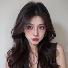 This photo is a portrait of a young woman with long dark hair, wearing a black sleeveless vest, short jeans, and a close-up shot of her face