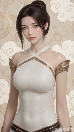 general, sfw, (Best quality, masterpiece, exquisite skin), (Solid color and rosy clouds background), 1woman, solo, breast, looking at viewer