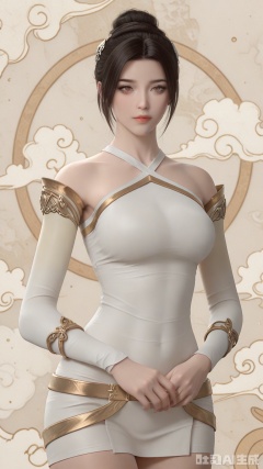 general, sfw, (Best quality, masterpiece, exquisite skin), (Solid color and rosy clouds background), 1woman, solo, breast, looking at viewer,, cowboy_shot