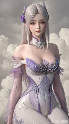 general, sfw, Solid Glossy and cloud background, 1woman, solo, breast, exquisite skin, looking at viewer, sitting, very awa, masterpiece, best quality, highres, absurdres, newest, aesthetic,