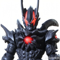 looking at viewer,monster,breastplate,shoulder armor,gauntlets,cover,mask,helmet,full armor,weapon,spikes,armor,gloves,horns,tokusatsu,no humans,science fiction,hard mask,no smile,no eyes,no nose,rubber bodysuit with line,alien