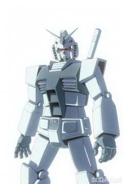 looking at viewer,full_armor,superrobet,Gundam,machinery,holding_weapon,gun,no_humans,glowing,robot,holding_gun,mecha,science_fiction,energy_gun,beam_rifle,strong contrast,mechanical buddy universe,RX_78_2(GQUUUUUUX_EP12_VER)